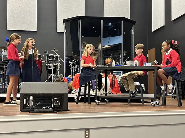 Elementary Drama focuses on several elements of theatre such as expression, projection, storytelling through movement and performance. Students practice the fundamental skills of acting, singing, and dancing, through the learning of choreography and through many acting and vocal exercises. Students are part of a Christmas Program every year and are given other performance opportunities throughout the year for different events and school chapels.